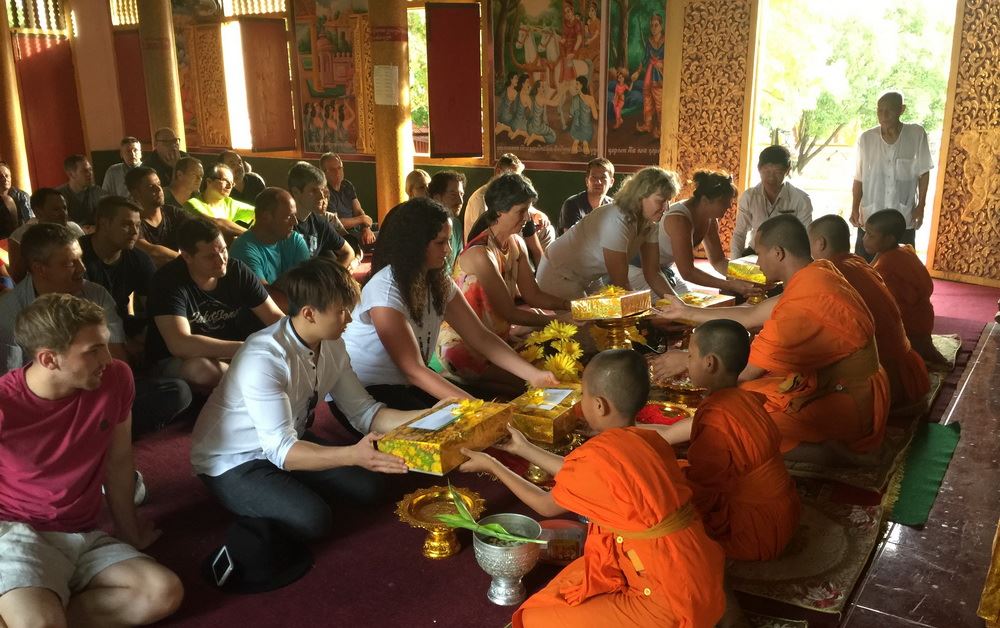 EXPERIENCE the local sociable practices & rituals of Khmer monks for blessings at Angkor Wat temple. Showered with jasmine flower water and chants, and respectably gifted with a red string on wrist – sign of good luck at the end of the ritual. Gain confidence in life and peace of mind once coming back home from the holy land of Siem Reap.